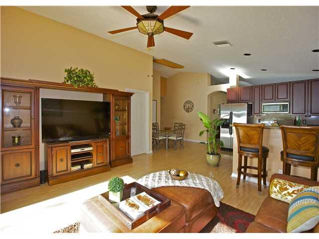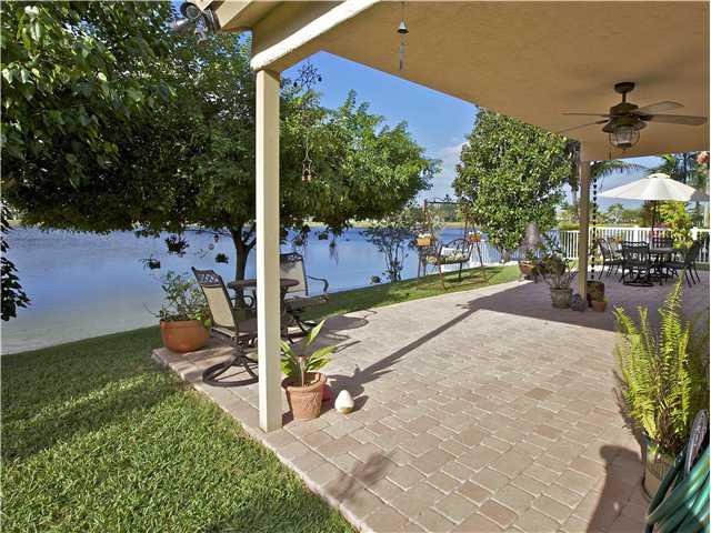 Stunning 4 bedroom, 2 bath home with warranty on a gorgeous oversized lakefront lot with spectacular views. This immaculate home has it all. Interior features include wood laminate floors throughout living area, new carpet in bedrooms. Upgraded kitchen wi th granite counters & stainless appliances. Upgraded master bath with whirlpool roman tub & designer tile. New exterior paint. Hurricane impact windows. Covered porch with extended paver patio overlooking lake and yard with fruit trees & much more!