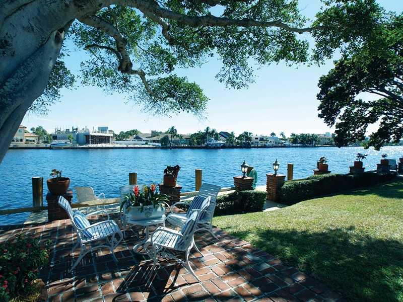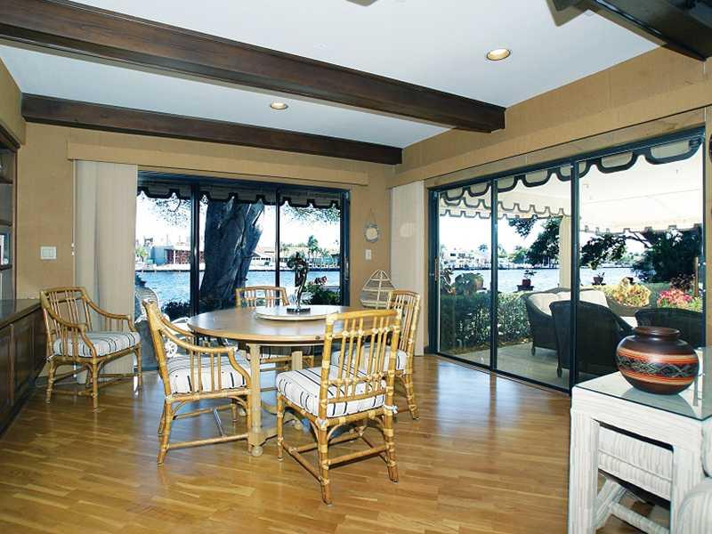 Direct Intracoastal home with 100 ft frontage. Herringbone-patterned parquet floors and 9±-foot ceiling with wormy chestnut beams & dentil moldings. Tile-floored kitchen has granite counters & full appliances including Bosch dishwasher & GE Profile range. Family room features a massive floor-to-ceiling wood-burning stone fireplace, beamed ceiling, oak flooring. Master bath is marble-encased with a separate tub and shower plus a double vanity. Marble pool patio & lanai with summer kitchen.