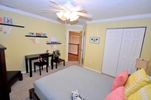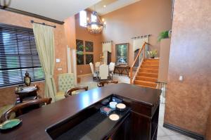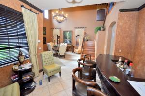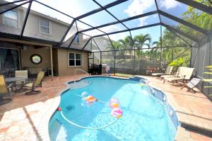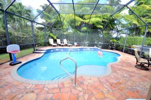 Wonderful home in desirable neighborhood of Stonehaven. This beautiful home sits on one of the largest lots in the community. It has a gorgeous pool and large backyard. This home features many upgrades like diagonal porcelain tile, crown moulding throughout entire home, upgraded kitchen with real wood cabinets, back-splash with insets, corian counter-tops, Hunter Douglas wood blinds in the bar area, master bedroom, dining room and den. Beautiful salt chlorinated pool with heater, outdoor grill perfect for entertaining, real wood flooring upstairs and in hallway, rod iron banister, upgraded carpet in the bedrooms, Mexican tile in patio and pool deck, all bathrooms have been upgraded, inside speakers for surround sound, pest defense system in the wall. The pool has just been re-screened,