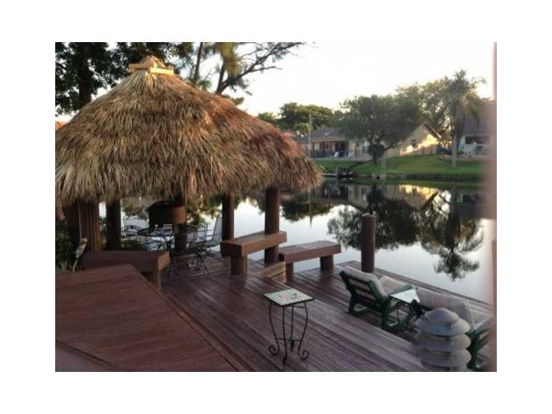 Lakefront 4/2.5 Cooper City Pool Home - built in backyard retreat! Open layout w impact windows & doors. Travertine wood burning fireplace. Kitchen updated, floor to ceiling pantry, Corian countertops & breakfast bar with SS appliances under warranty. Mas ter bedroom down with large walk in closet & on suite bathroom. Walk in attic for storage along w hallway & laundry chute. Big dock and chickee hut for entertaining waterside in addition to pool and pool deck with waterfall. Upgrades galore!