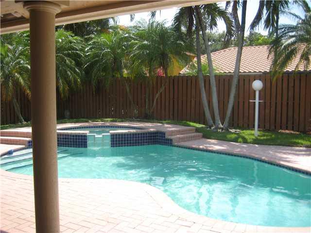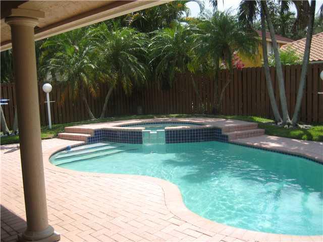 Immaculate 4 bedroom and 3 baths in desirable Jacaranda. Very spacious with neutral tile throughout, white kitchen cabinets, appliances and spacoius cooking island great for entertaining. The backyard features a beautiful pool, jacuzzi and a cover terra ce to spend the weekends in your own paradise island. Plenty of backyard room for pets.