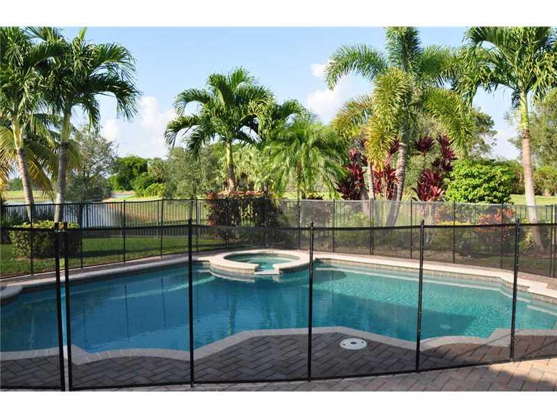 Beautiful 5 bedroom, 3 bath, 3 car garage, heated pool & spa, golf, water, on cul-de-sac. Updated bathrooms. Marble & wood floors. Screened patio. Custom closets. Plantation shutters. Crown molding. Central vac. Built in living room unit with stone firepl ace. Custom window treatments. Built in kitchen banquette. Stereo system inside & on patio. Air conditioned permitted room in 3rd garage can be used for storage/office/playroom. Close to guard gate & Clubhouse in exclusive Heron Bay.