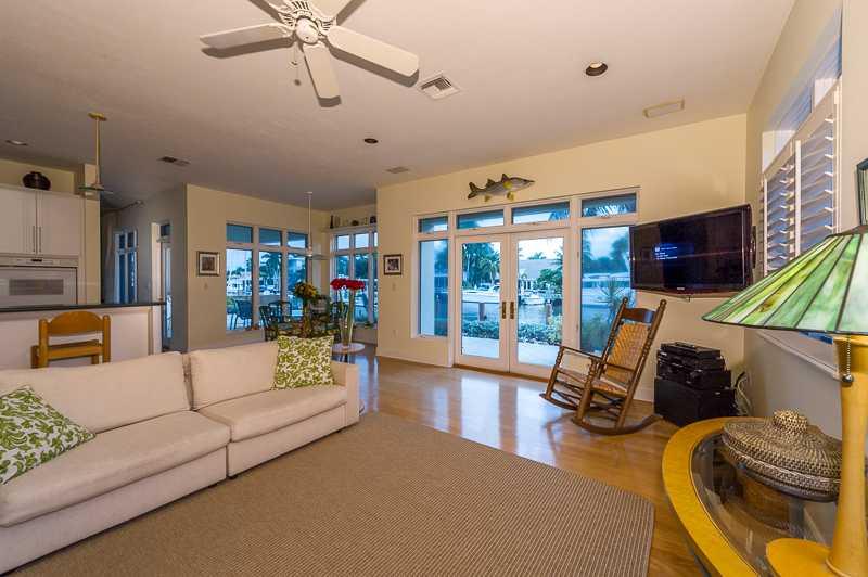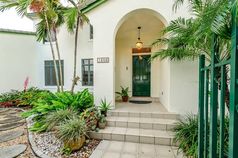 Price Reduced! 80' waterfront turn key home with boat lift, tackle room, two car garage, courtyard garden welcomes guests to covered archway entry. Foyer opens to main living area, ten foot ceilings, stairway & gallery. Cheerful colors warm the great room , kitchen & breakfast area. The formal dining room has views of garden & water. Expansive tiled deck overlooking dock adjoins the covered loggia with built-in BBQ. Home can be sold with furnishings. Contractor builder home is well built and a great buy!