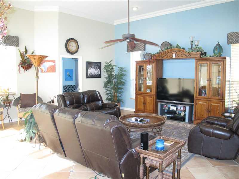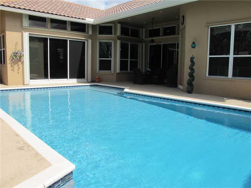 Beautiful water views! Over 3000 a/c sq. ft. including 3 bedrooms plus study (includes built-in desk/wall unit, no closet). Wood floors in master bedroom! Remodeled bathrooms! Huge kitchen featuring wood cabinets, Corian tops stainless appliances, center island, large pantry! Tile roof replaced in 2006. 2 a/c units (replaced in 2005 & 2010. New pool finish (Diamond Brite) in 2014! Crown moldings in Master, living, dining, kitchen & family rooms! Spacious master suite & bath w/ Jacuzzi tub! Top schools!