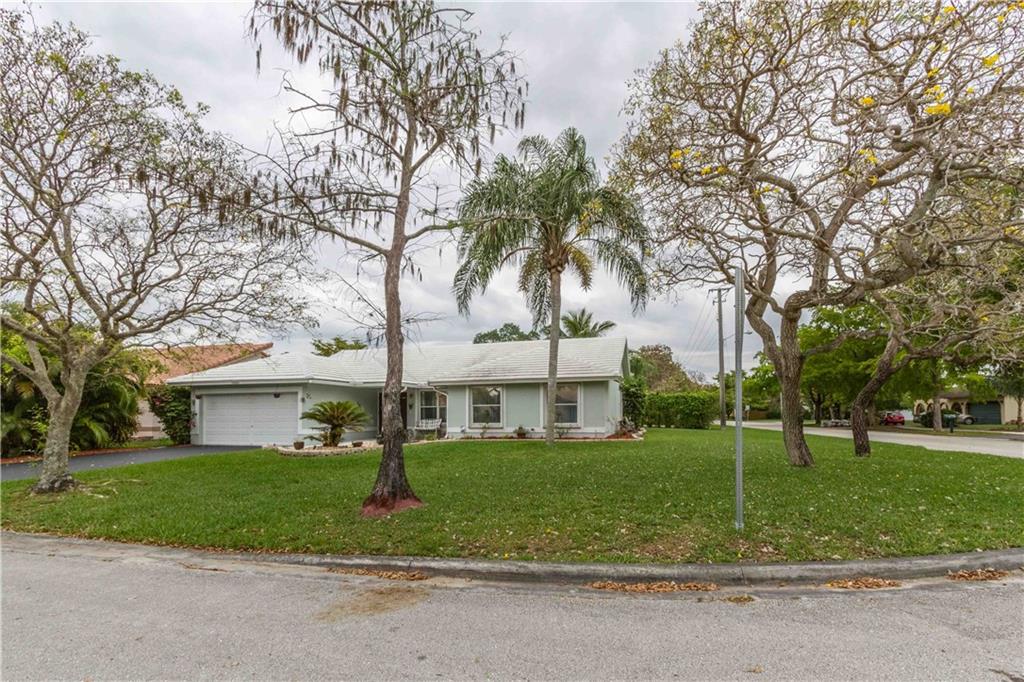 AMAZING HOME!!! Completely spotless 4 bedroom pool home in the heart of Coral Springs. Corner lot with a huge front yard. Gorgeous tropical oasis in the backyard with heated pool & spa covered by a screened enclosure. The home has a formal living room, formal dining room and family room. Each bedroom has newer bamboo floors. Stainless steel appliances in the kitchen, new 80 gallon solar power water heater, whole house water softener & reverse osmosis system, accordion hurricane shutters on every window.
