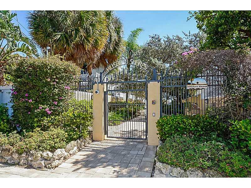 PRIVATE GATED BEACH ACCESS IN EXCLUSIVE HILLSBORO SHORES. UPDATED 3/3 HIGHLIGHTED BY SPACIOUS ENTRY OPENING ONTO LIVING AREA WITH WOOD BURNING FIREPLACE AND CORAL ROCK FEATURE WALL, EUROPEAN DESIGNED NOLTE KITCHEN WITH ROSEWOOD AND WHITE CABINETRY, HIGH-E ND STAINLESS APPLIANCES, BRAZILIAN BLUE PALLADIO GRANITE, OPEN CONCEPT DINING AND FAMILY ROOM, IMPACT WINDOWS AND CONTEMPORARY INTERIOR FANS. SCREENED POOL AND PRIVATE BEACH ACCESS MAKE THIS HOME A COMPLETE TREASURE. COME ENJOY THE SALT LIFE.