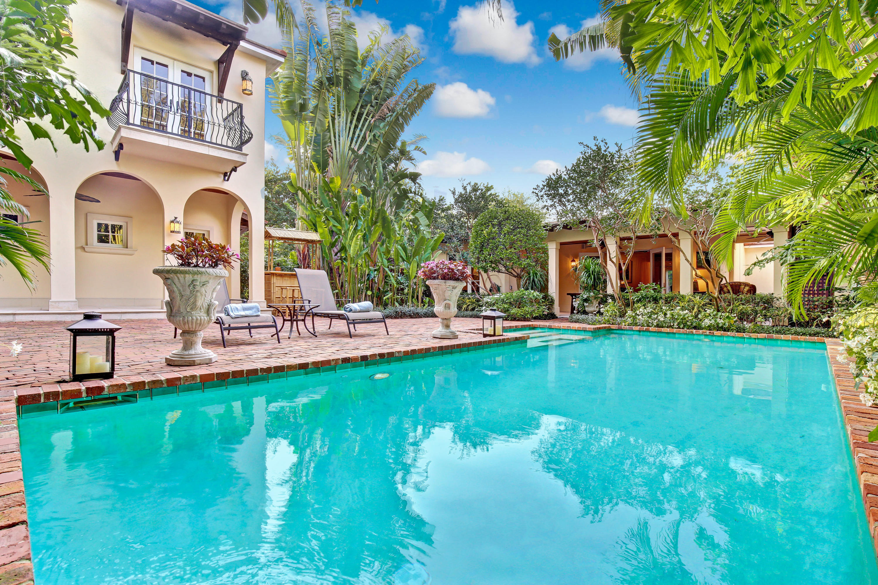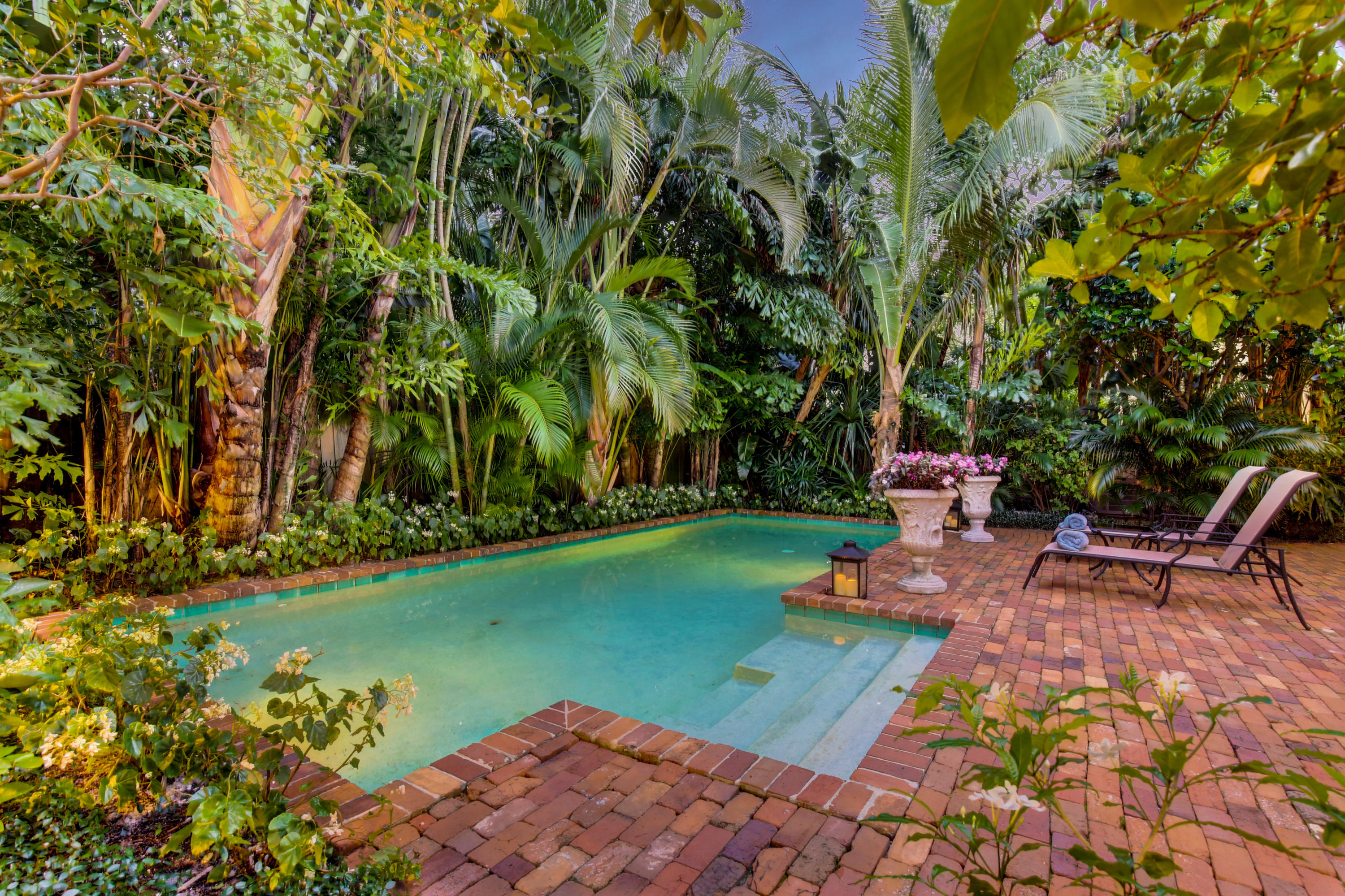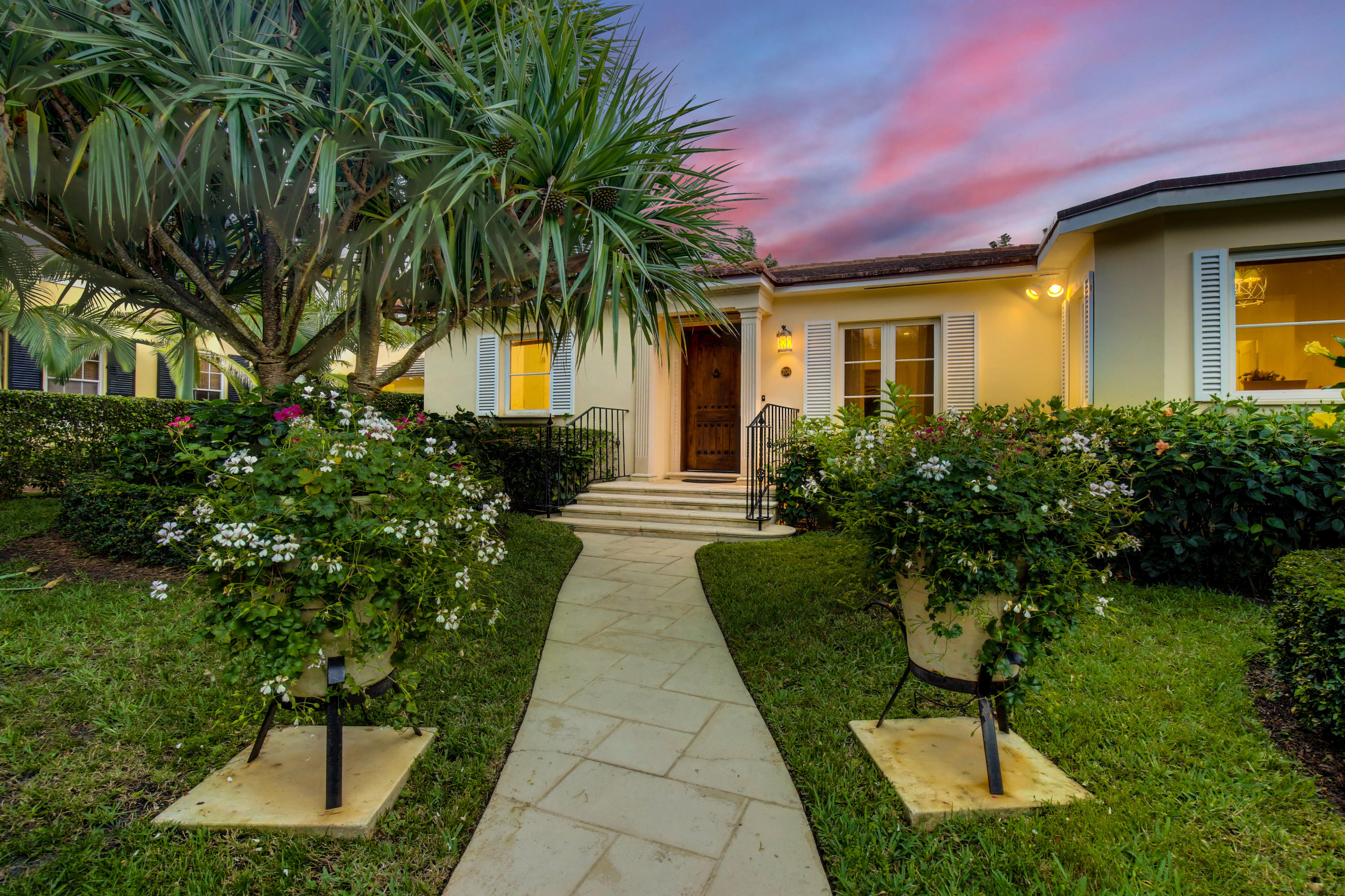An enchanting one-of-a-kind jewel in the heart of historic El Cid. Ideally located on the Intracoastal block, mins. from Worth Ave., City Place and the Beaches, this elegantly appointed single story home is set in a magnificently landscaped tropical paradise. The home features 2 bedrooms/ 2 baths in the main house, and 2 bedrooms/1 bath in the guest house - perfect for guest privacy or an office, den or staff accommodations. Stunning gardens like those from the pages of Architectural Digest greet you as you transition from the all white living room through to the tropical paradise outside. Two expansive loggias extend the living area into the fragrant gardens - perfect for outdoor living and entertaining! A separate barbeque area can easily be turned into a stunning outdoor kitchen