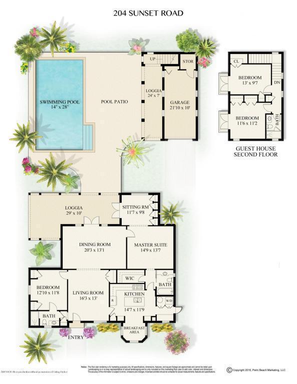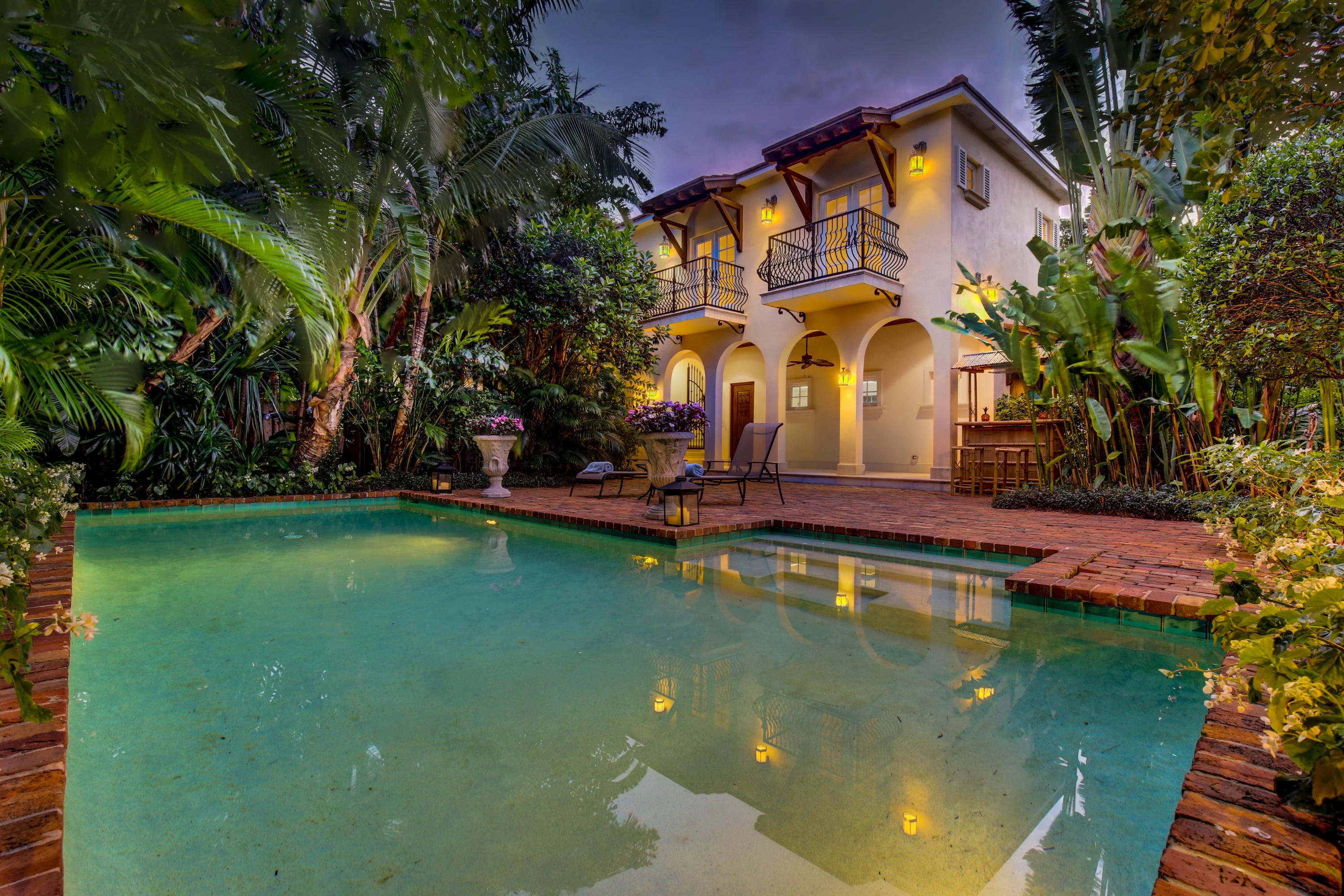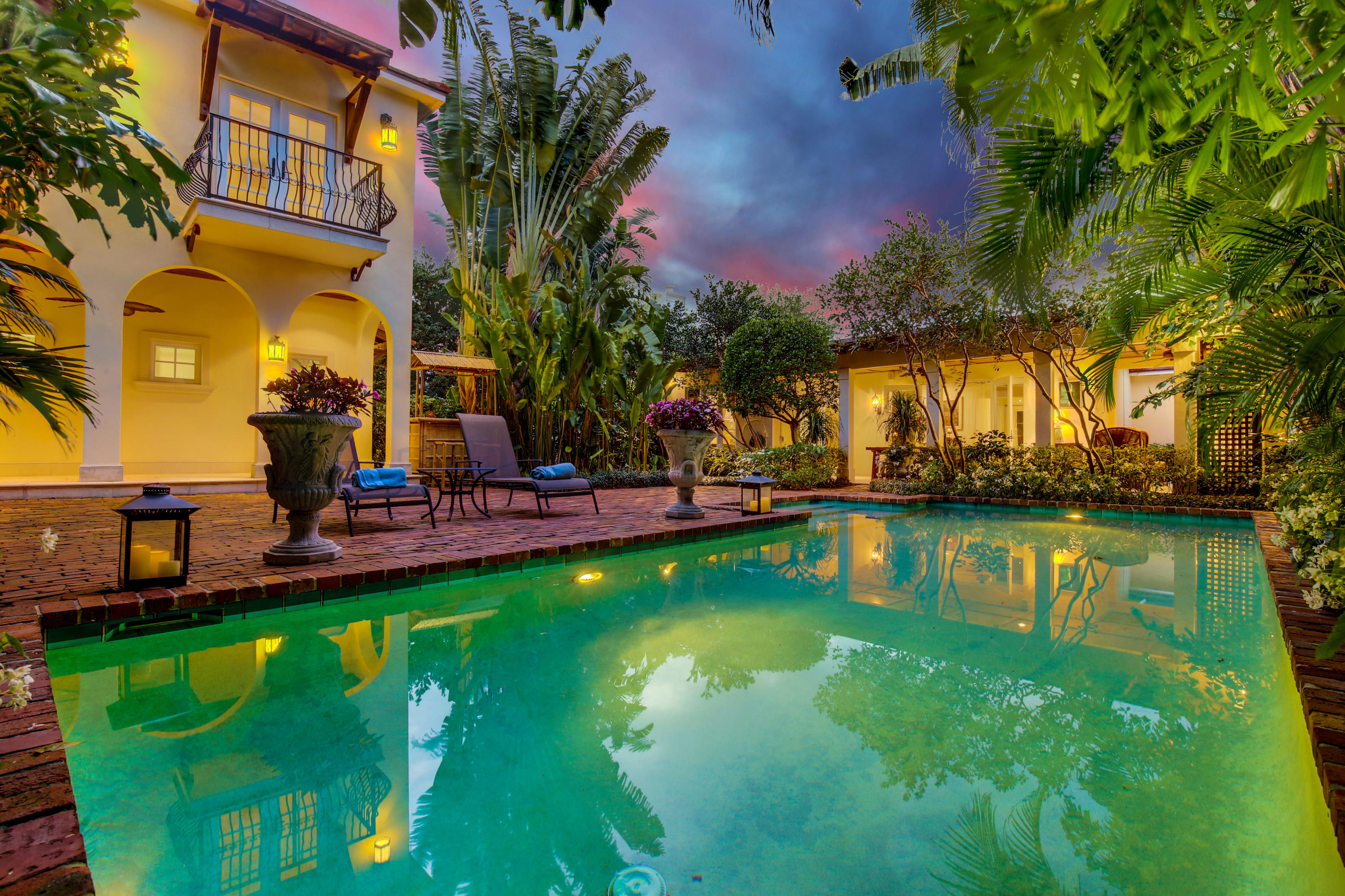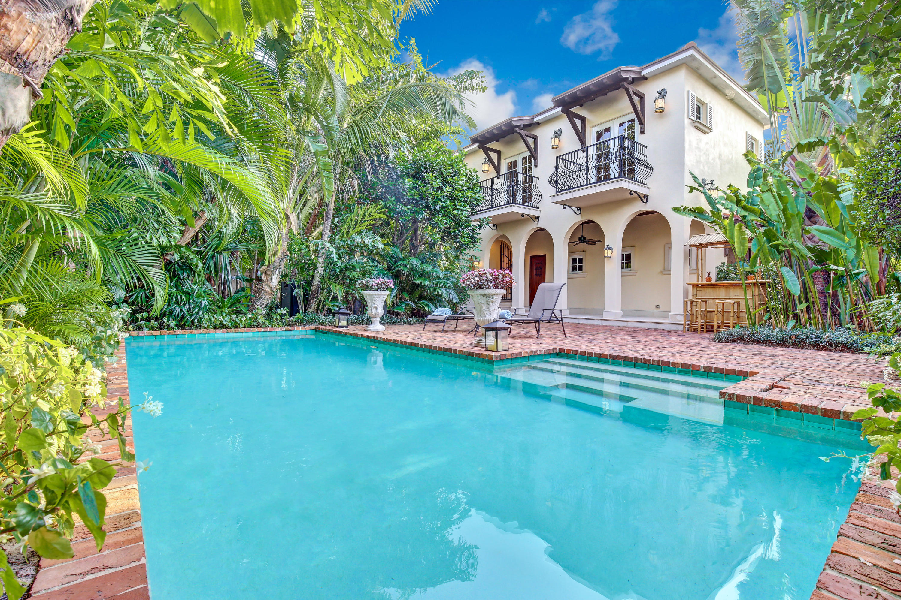An enchanting one-of-a-kind jewel in the heart of historic El Cid. Ideally located on the Intracoastal block, mins. from Worth Ave., City Place and the Beaches, this elegantly appointed single story home is set in a magnificently landscaped tropical paradise. The home features 2 bedrooms/ 2 baths in the main house, and 2 bedrooms/1 bath in the guest house - perfect for guest privacy or an office, den or staff accommodations. Stunning gardens like those from the pages of Architectural Digest greet you as you transition from the all white living room through to the tropical paradise outside. Two expansive loggias extend the living area into the fragrant gardens - perfect for outdoor living and entertaining! A separate barbeque area can easily be turned into a stunning outdoor kitchen