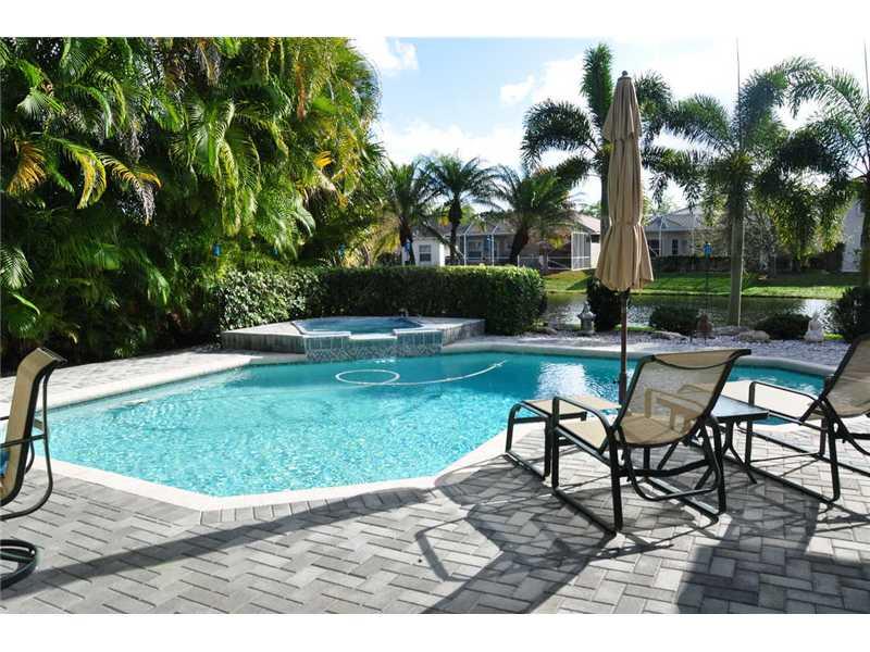 You will love this beautiful Wyndham Lakes 4 bedroom, 3 bath former model home at first sight! Features include split floor plan, open eat in kitchen with newer stainless steel appliances, remodeled bathrooms, frameless shower in master, tile throughout, new A/C, and new water heater. Wait until you see the backyard! The landscaping is fabulous, the water view beautiful, and the salt water pool and spa are heated. 3 car garage. Great location, schools, and low HOA fees.