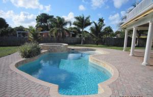 Captivating two-story home made for entertaining and comfort. Easy-access to I-95. Impress all your friend and family starting with the outside of your home with an in-ground pool with attached spa, large partial covered brick patio, outdoor kitchen, and extra grass yard space. Feel no restrictions to your activity outside with tall, wooden fence surround the sides and back of your home. The interior is also a delight with an open floor plan for the first floor with vaulted ceilings in kitchen and living area. Stone embellished fireplace in living area. Built-in shelves in dining area in kitchen. All bedrooms are located upstairs along with both full bathroom for added privacy. Half bath on first floor, Master bedroom is a cheerful cherry red color with a modern bathroom and large shower.