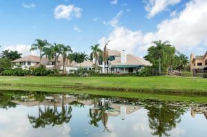 Stunning 3 bedroom 5 bath home located on a magnificent golf course and lake view. A dramatic formal entry overlooks a gracious living room featuring a wood burning fireplace with coral stone accent. The spacious Master Bedroom showcases a large dressing area and bathroom. French doors open to the expansive pool and patio area. The additional bedrooms are on the opposite side of the home with privacy for guests. Beautifully landscaped and located in the exclusive Boca Grove Plantation. This country club features golf, tennis, fitness facility, restaurants and social activities for the entire family.
