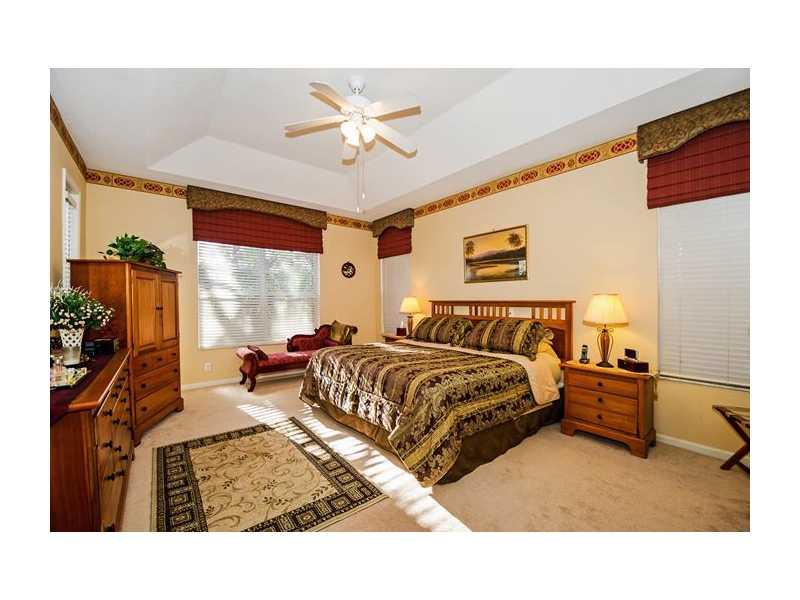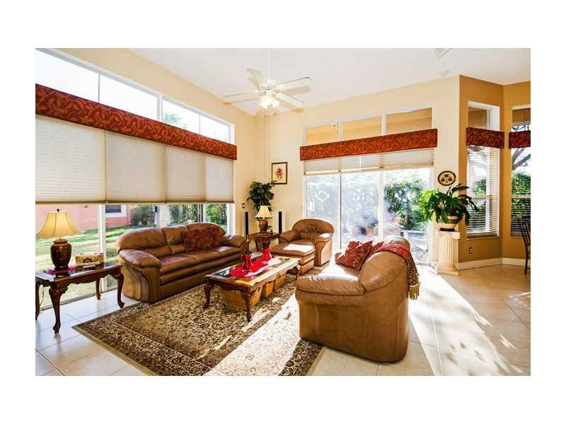 Impeccable home. A - Rated school district. City's best restaurants & entertainment. Open floor plan, 12' volume ceilings, 18" tile thru-out, wood finished floors in bedrooms. Master suite with sitting area, large walk-in closet,10' tray ceiling, master b ath dual sinks, roman tub & shower. Maple cabinets & granite counter tops. Custom design window treatments & tinted. Recently painted exterior, newer A/C, S-tile roof. Covered lanai 27'X8' paved ideal for entertaining. Close to Coral Square Mall. Must see