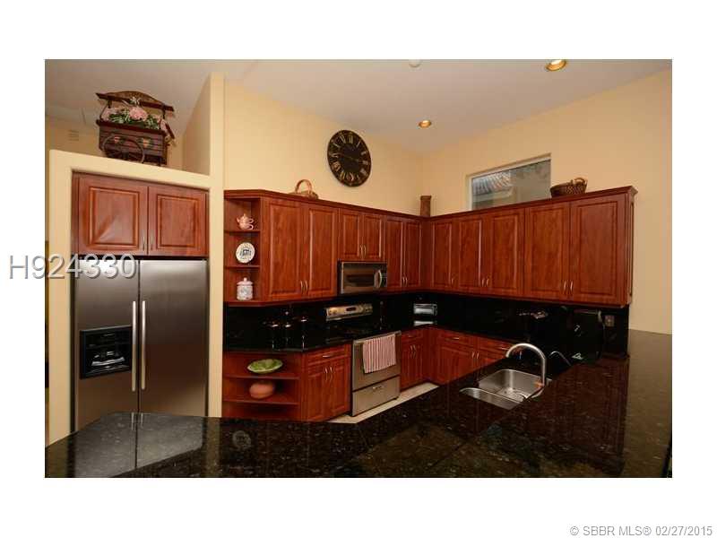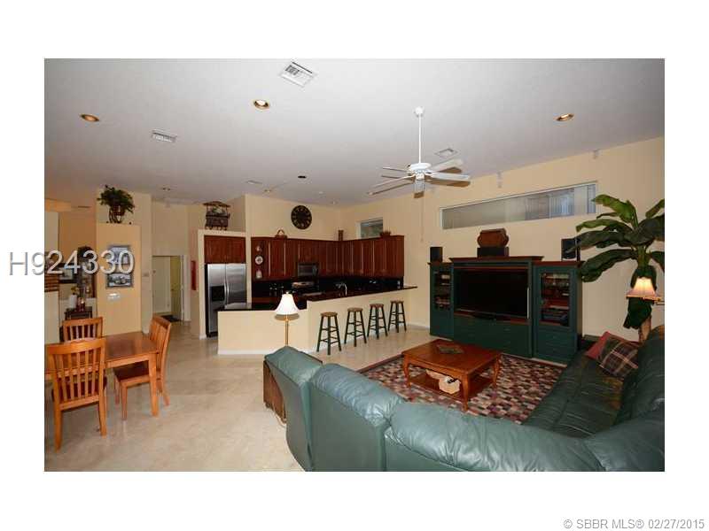 Without a doubt, this waterfront, pool home is nestled within one of Weston's most elegant communities. This spacious, one story 4 bedrooms PLUS a DEN, 3 bath home has gorgeous travertine floors throughout the common areas and laminate floors in all bedro oms. Expansive living, dining, kitchen and family room. Remodeled kitchen with 42" cabinets, granite and stainless steel appliances. Beautiful patio area overlooking pool and water. 3 car garage, pavered driveway and walkway. This home won't last.