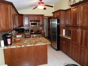 3/2 CBS, fully fenced, no pond, kitchen w/granite, cherry cabs.,mosaic backsplash, vaulted knockdown ceilings, a/c unit 1 yr. old, wood floor in mstr. bedrm., 15x30 alum. shed w/wood floors 240 elec., l/v cable & phone panel, screen patio, hurricane shutters,one blk off paved rd.