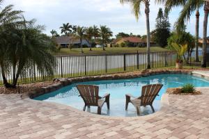 Gorgeous 4 bdr lakefront home in desirable, guard gated Island Lakes. A wide open feel from kitchen to family room. This home has stunning views and has recently been completely renovated, including custom kitchen with Viking appliances, granite counters and custom wood cabinets. Dark wood grain tile throughout the home. All hurricane impact windows and doors,including floor to ceiling in the living area that gives you incredible views of the lake. All new bathrooms and master bath has a brand new spa tub. New ceilings, baseboards and all new doors throughout the home. LED lighting throughout. New Washer and Dryer. All new pavers surrounding the home. Enjoy relaxing in your salt water pool with a 'seated'' area entry, tropical garden feel with expansive lake views. This home is perfect.