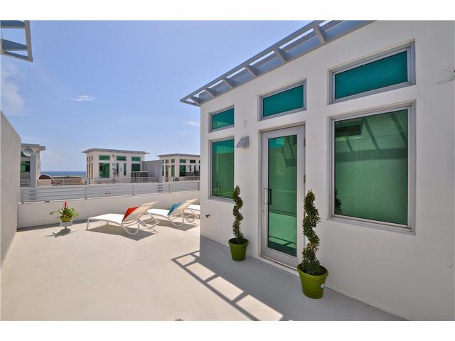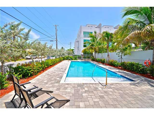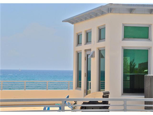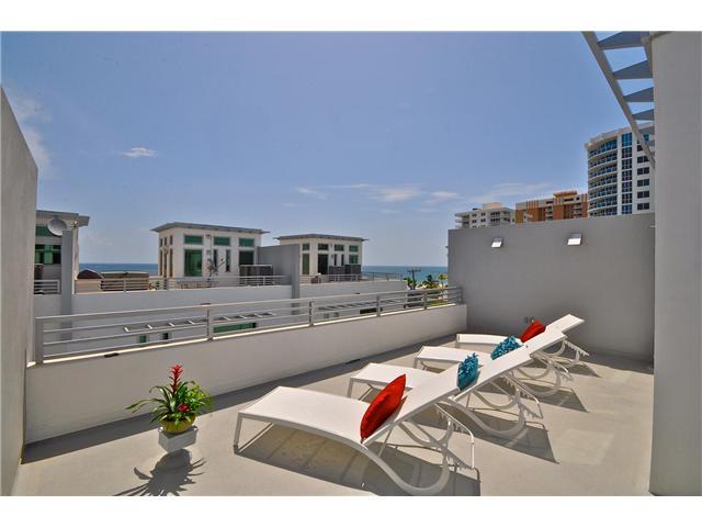 Beautiful 3 bed, 3 bath fee simple contemporary townhouse just 80 ft from the beach and nestled in a secure gated complex! Features include 10' ceilings, security system, private elevator and spacious roof top terrace with ocean breezes. Elegant open livi ng spaces w/ porcelain floors and luxurious decorating. Gourmet kitchen is finished with granite counter tops, designer cabinetry and all stainless steel appliances. Impact glass & over sized 2 car garage. Price reduced for a quick sale.