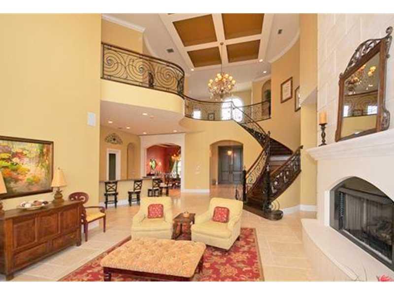 Breathtaking water views surround this exquisite estate home on a private oversized cul-de-sac lot.Gas fireplace and wet bar with walk-in wine cellar add to the entertainment area. Home theater, game room with bar, office with built-in wood panels, elevat or, Jerusalem Stone and wood floors, upstairs and downstairs laundry rooms, outdoor built-in bbq area with oversized pool. Master bedroom includes a sitting area, and his and hers en suite with claw tub and large walk in closets.