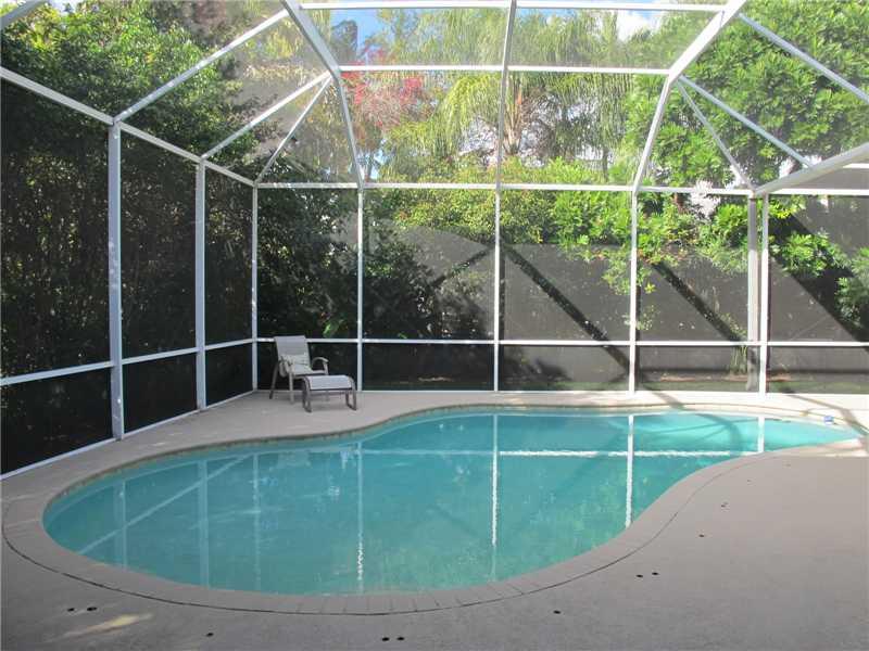 Beautiful triple split 4 bedroom home with lots of privacy. Fully tiled interior. Remodeled master bathroom with 2 designer sink vanities, Jacuzzi tub and separate shower. Remodeled cabana bathroom too! Spacious kitchen with 42" upper cabinets, granite co unter tops, stainless appliances. Buffet bar & pantry. Laundry room with tub, washer & dryer. Covered patio and screened pool. S-Tile roof replaced in 2006. Great location, home in center of cul-de-sac street. Bdrm 2 & 4 have direct access to bathrooms.