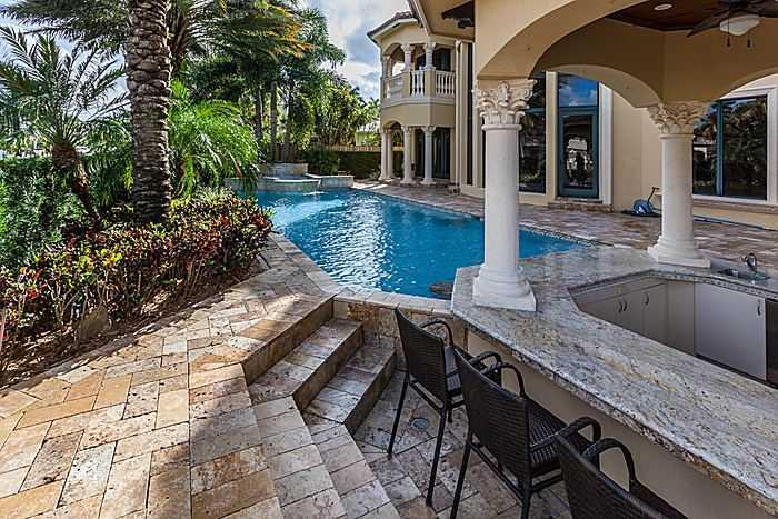 Customized home loaded w/ state of the art features. Best canal, 120' wide, deep water, & turning basin. Home theater, crestron & lutron home management & entertainment systems, steam shower and spa, large closets, wine room & bar, one-of-a-kind gazebo w/ swim up sports bar. Elevator, whole house generator, perimeter security cameras, award winning gourmet kitchen w/ Wolf gas range & top of the line appliances. Summer kitchen. Gated entrance w/ circular drive amidst specimen palms & tropical plantings.