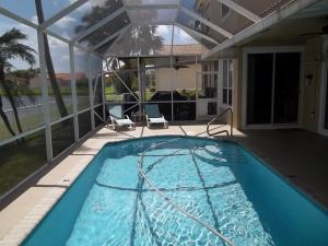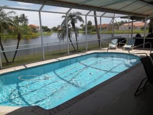 Outstanding and Fabulous water views from this totally updated single family home with a pool and two car garage. Loaded with upgrades: 18'' saturnia style tiles throughout featuring inlays in the living room and inlays in the kitchen. Hardwood flooring in the master suite. Two zone A/C (both aprox. 6 years old). Roof aprox. 6 years old. Recently painted outside with new landscape. New pool screen with an awning over house. Generator hook up. Brick pavers, sprinklers fed from lake, Chef kitchen with convection oven, vented hood, limestone countertops with tublestone backsplash. New patio extension with overhang. Vaulted ceilings, foyer, family room. Bright and very well kept.