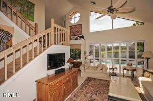 CHARMING 4 BR HOME WITH A BEAUTIFUL GOLF COURSE VIEW. RETRACTABLE AWNING OVER HEATED POOL TO SHADE THOSE SUNNY DAYS. PLANTATION SHUTTERS. HIGH CEILINGS. MASTER BR DOWN. 3 BR'S UPSTAIRS. GORGEOUS GOLF COURSE VIEWS FROM UPSTAIRS. FRONT HALL, DR AND KITCHEN CHANDELIERS EXCLUDED.