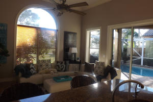 3 Bedroom 4 bath pool home on golf course, loft, family room living room, den with a Murphy Bed, lots of room!! Master bedroom on first floor. Upgraded recently, furniture negotiable, could be turnkey...close to the club house and near front entrance, great location facing south..granite, stainless appliances, newly planted palm trees and landscape lighting.