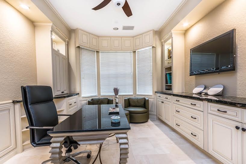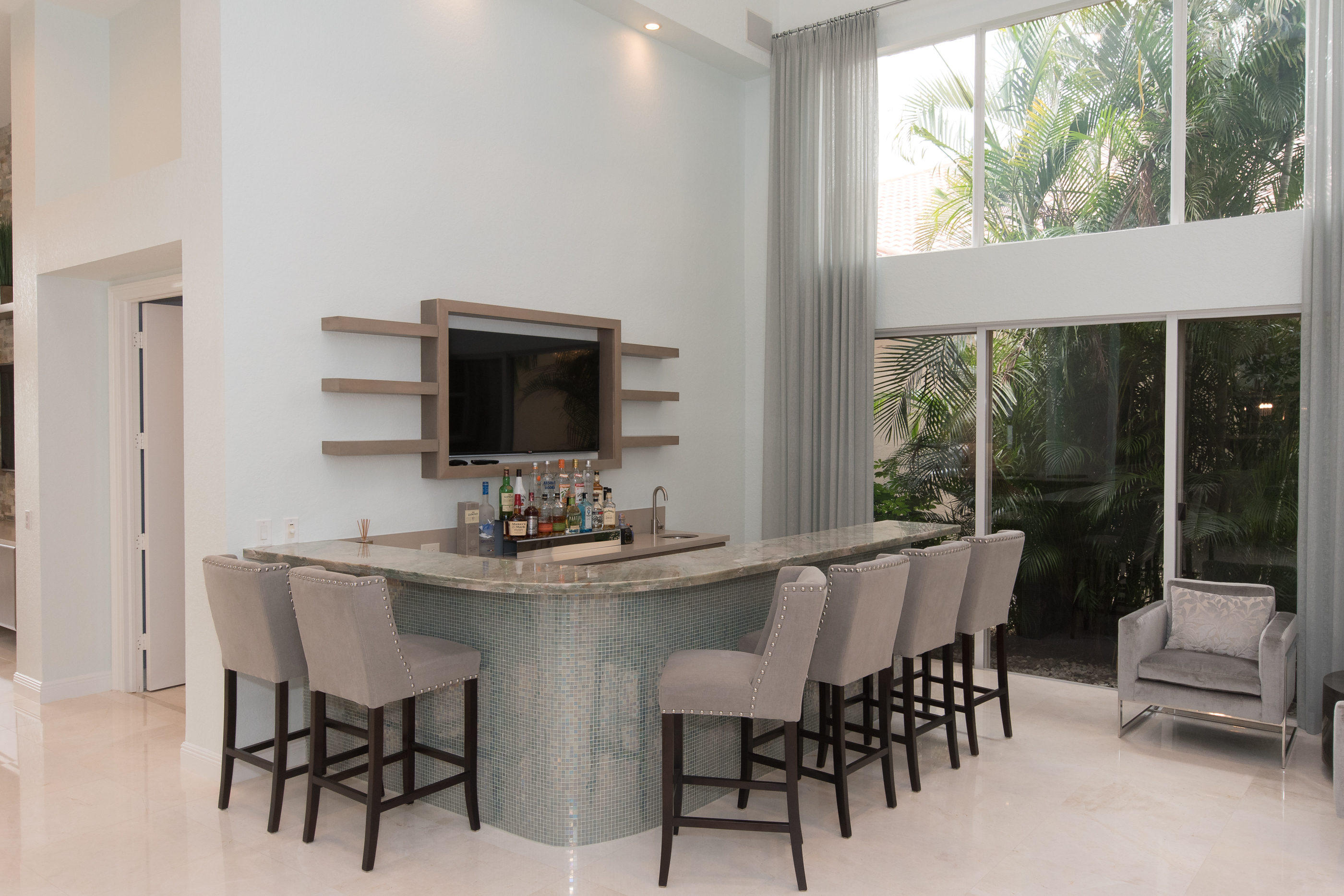 Situated on a stunning lake lot, this 4 bedroom, 4 1/2 bathroom home is ready for the buyer that is looking for something special. Beautifully designed and decorated.Features include new marble and wood flooring throughout, a new exquisite white kitchen, two new master bathrooms (yes two), a gorgeous new custom built office, stone wall accents throughout the home, a fabulous bar, accordion hurricane shutters, electric patio screens and so much more. This home has it all!!