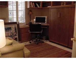Neutral, light, bright & open, this charming one-story home offers 3 bedrooms & 2 baths featuring volume ceilings; neutral tile floors; white cabinetry, granite countertops & glass tile backsplash in the kitchen; a built-in desk & Murphy bed in the third bedroom; accordion hurricane shutters & an inviting open patio with a pool & spa.