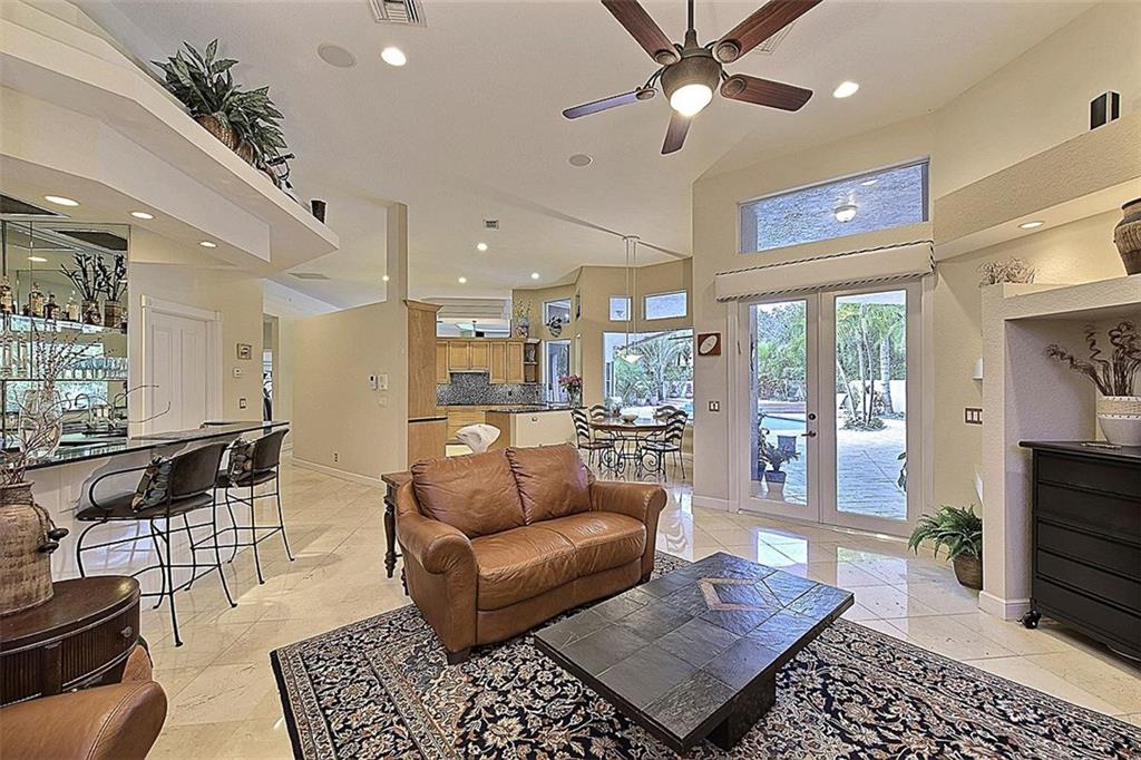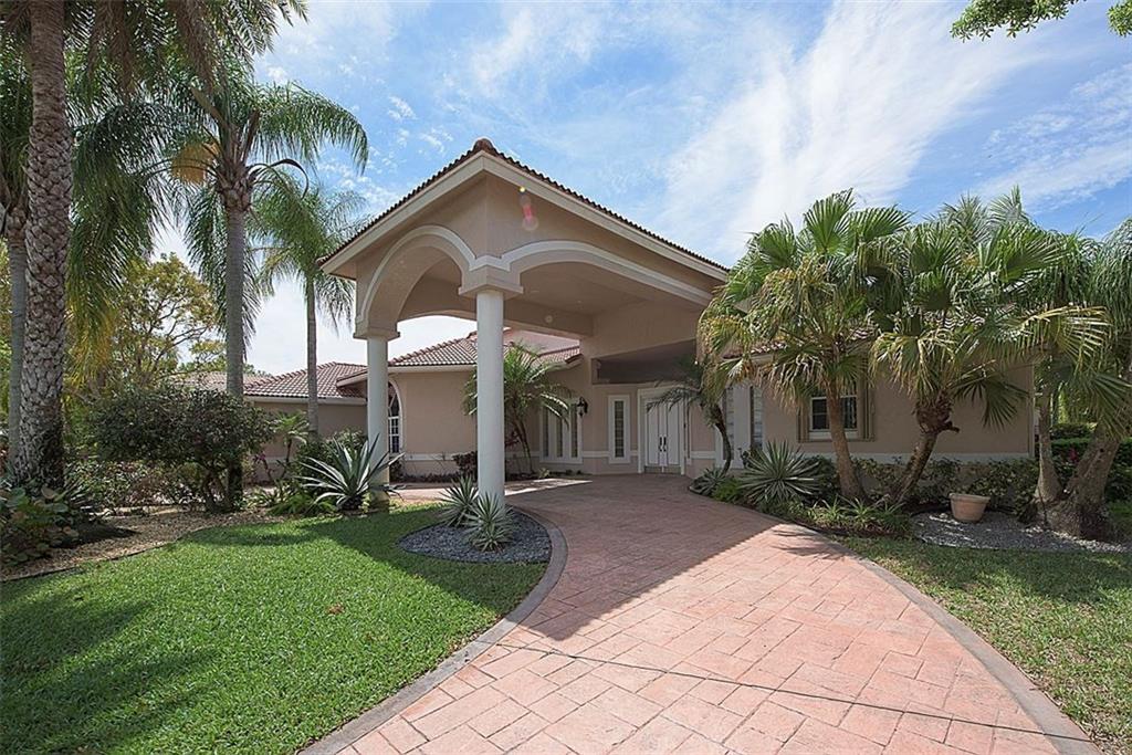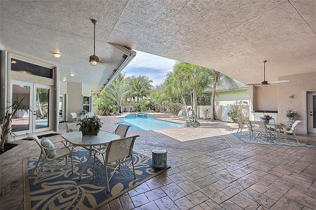 Fabulous Mediterranean inspired courtyard. Enormous tropical walled in private 50x70 patio, 18x36 heated pool & spa. ! Porte-cochere & immense driveway, double door entry. Living areas, master, guest house & bath open to this paradise. Great party house or cozy family gatherings. Marble floors, remodeled gourmet kitchen biggest subzero frig & freezer, all stainless, granite, wood. Updated baths, huge master w/sitting area. Elegant formal dining, living room doubles as home theater. Hurricane shutters.