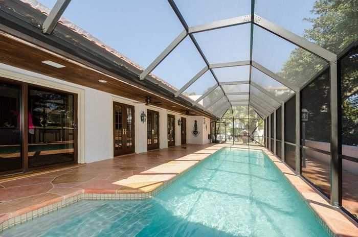 Beautifully updated European style beach villa situated on 1 1/2 lots & located on one of only 9 streets nestled between Birch State Park and the Atlantic Ocean. Gorgeous eat-in kitchen w/huge granite island & stainless appliances. Spacious living room w/ Travertine marble flooring & romantic double-sided fireplace. Impact resistant glass French doors open out to a 50' screened porch w/ a 40' lap pool. Huge Chicago brick driveway for multiple cars plus a tiled 2-car garage. Live the beach lifestyle!