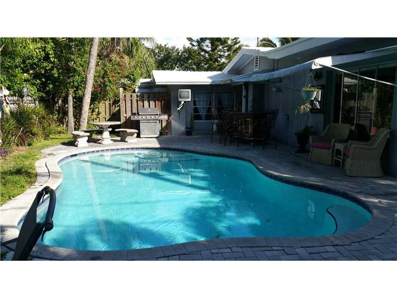 Excellent location in million $ neighborhood, walking distance to the beach with private gated access or to the beautiful park at the Hillsboro Inlet. This home has a wood burning fireplace and a huge recreation room with a wet bar with a pass-through to the kitchen, which opens to the pool/patio area. Garage converted to 3rd BR with 1/2 bath.