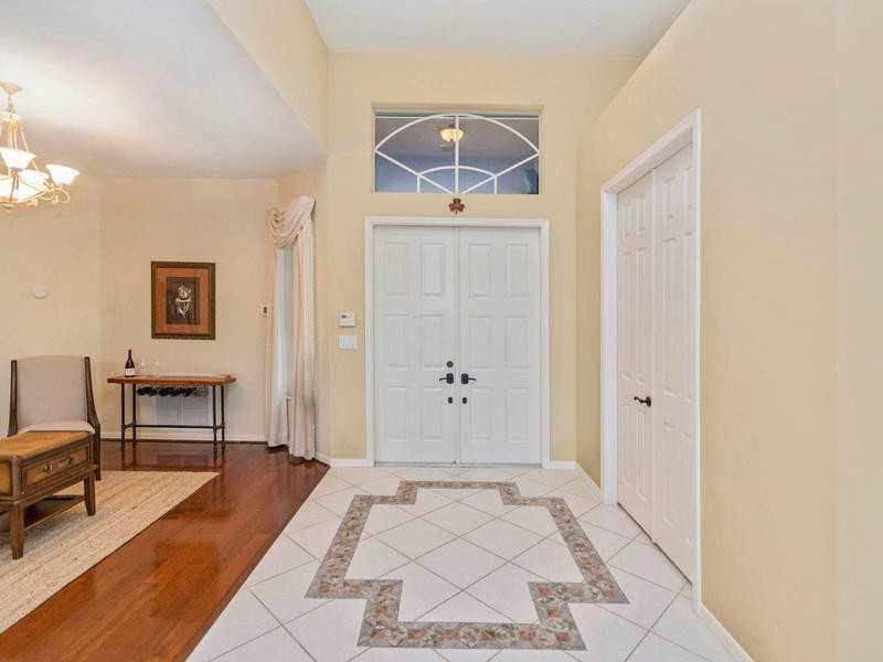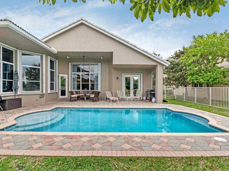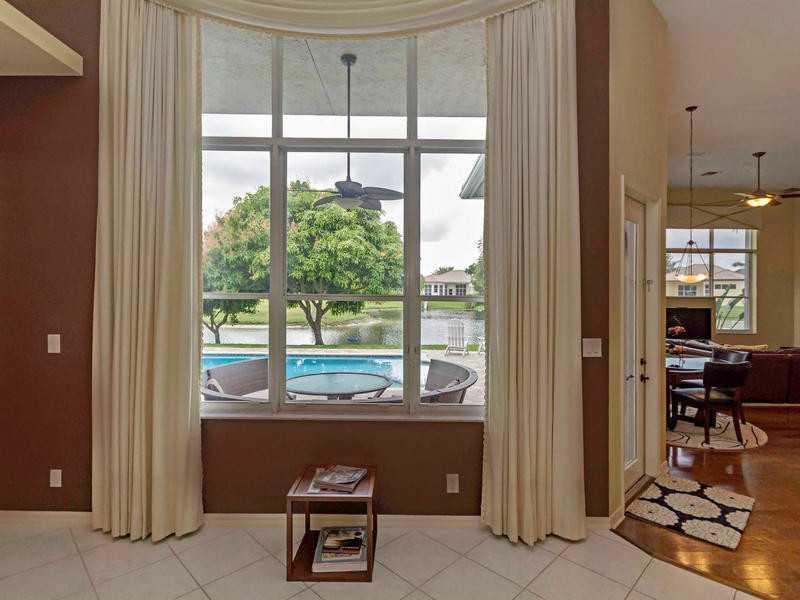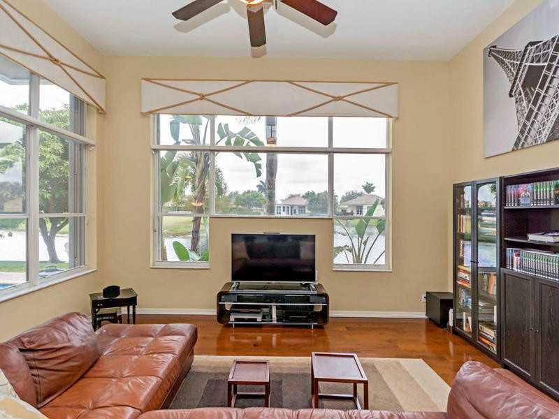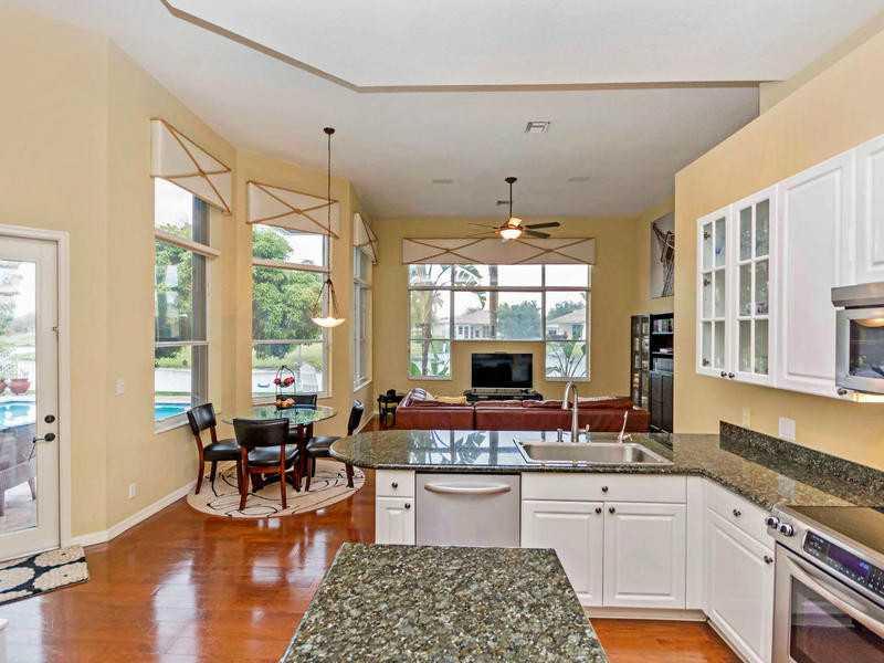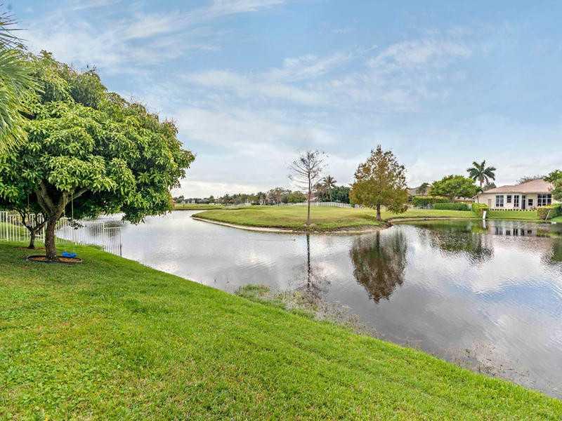 PRICE NOW $589,000 + $5,000 CREDIT FOR CLOSING. 3 BEDROOMS + 10x11.5 OFFICE COULD BE USED AS 4TH BEDROOM, OR PLAYROOM. 3 full baths. GORGEOUS WATER & GOLF COURSE VIEW. SALT WATER POOL IS 2 YRS. OLD. 2 CG & GOLF CART GARAGE. Kitchen has granite countertop s, stainless appliances & island, Bose speakers & central vacuum. Master bathroom has Jacuzzi Roman tub. WHITE ACCORDION SHUTTERS. House just painted. MAINTENANCE INCLUDES 24 HR.GATED COMMMUNITY, BASIC CABLE & ALARM MONITORING.