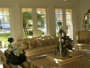Wide Lakefront views of 12 Acre lake from this Spectacular Carlyle, softly decorated, lightly lived in & immaculate ! Formal Living Room w long French windows & Formal dining room are light, bright & elegant. Kitchen w pantry, solid top stove, French refrigerator has expansive corian counter/ bkfst bar is open to morning room & huge family room, all w wide Lakefront southeasterly views & easy access to enclosed covered porch, pool, screened lania & decorative Patio. SGD from Master Suite also has his 'n her baths, Roman soaking tub, glass block for ladies vanity plus man's dressing area & step in shower for both, plus California style walk in closets. 3 way split bedroom plan. Columned covered front porch great for relaxing w morning evening coffee while visiting neighbors.