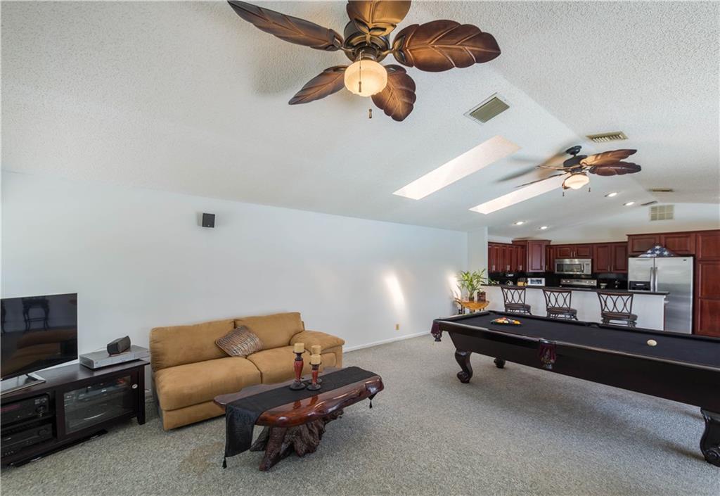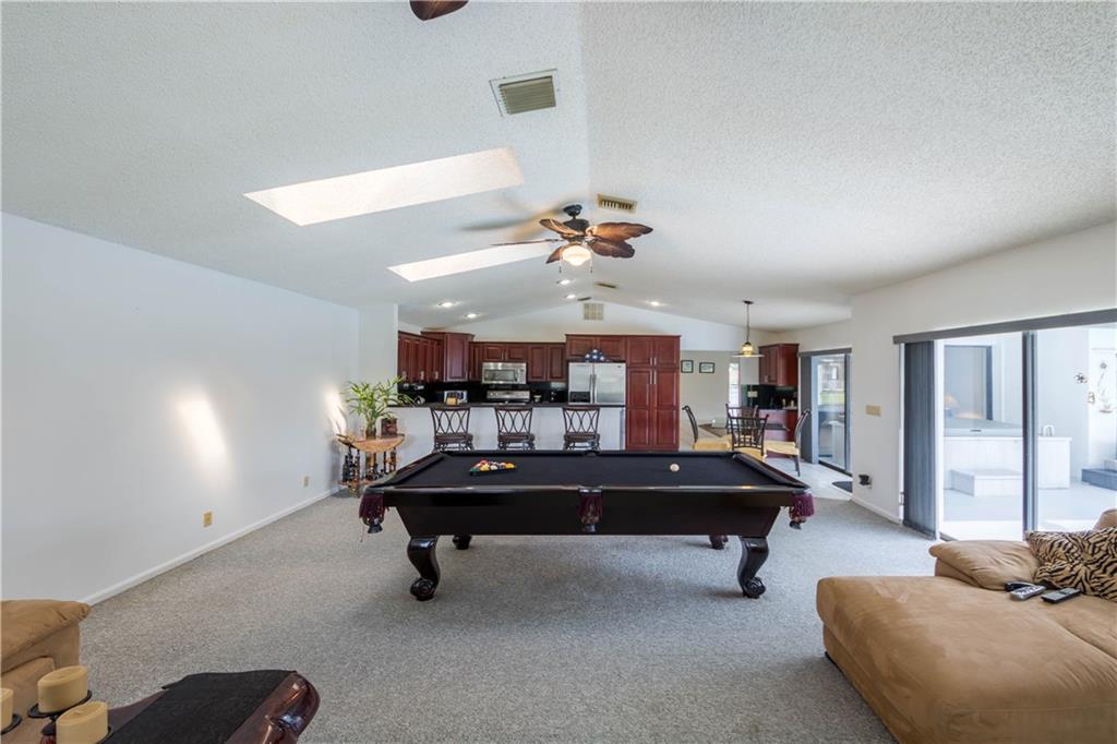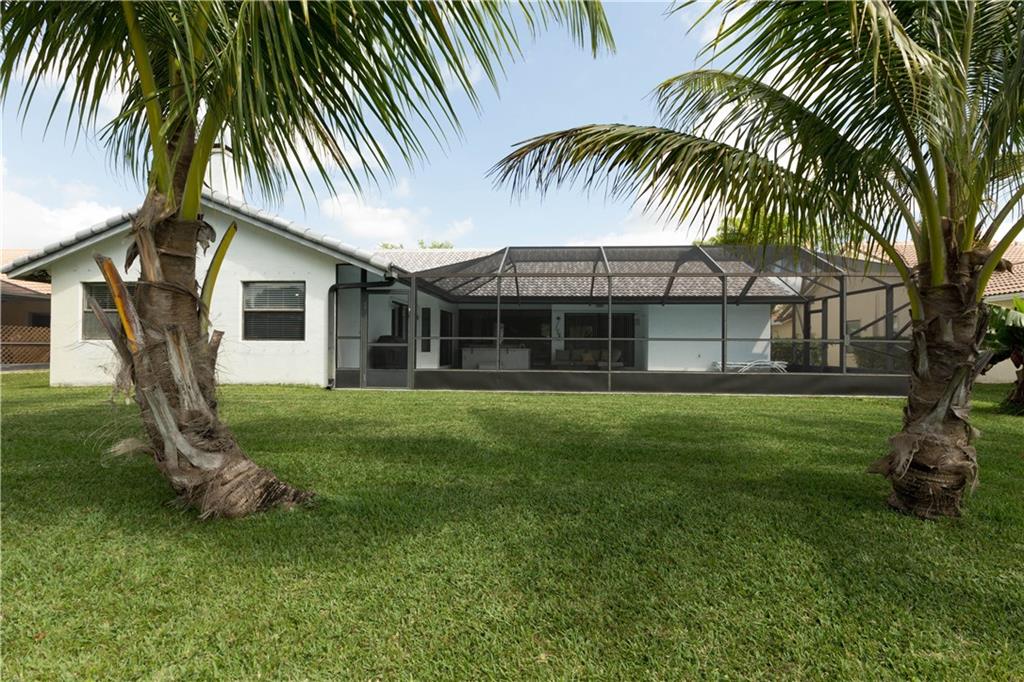 Florida living at its finest! Waterfront home with large screened pool & patio! Updated kitchen with granite countertops, wood cabinets & stainless appliances opens to HUGE family room with fireplace! Two new A/C units & water heater in 2016. Gorgeous newly remodeled bathroom! Split bed plan, security system & central Vac. Roof & screen enclosure replaced in 2006! Double doors in master suite & Bedroom 2. Great backyard with palm trees & plenty of room for a playground set! Easy access to Sawgrass Exp.
