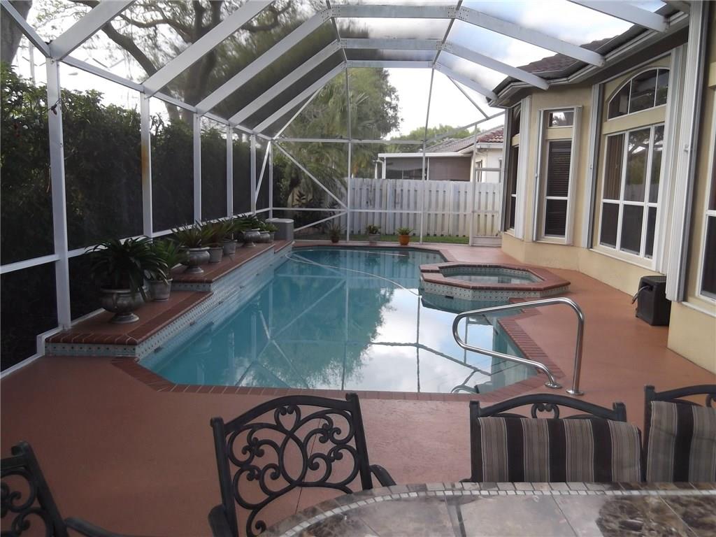 FRESH ON THE MARKET!! FANTASTIC 4/2.5, 2 CG POOL HOME WITH SOARING 14 FT CEILINGS IN THIS PRESTIGIOUS GATED COMMUNITY. OVER $100,000 IN UPGRADES INCLUDING ROJO ALICANTE MARBLE FLOORS THROUGHOUT THE LIVING AREA, BRAZILIAN CHERRY WOOD FLOOR IN THE BEDROOMS, INCREDIBLE OPEN KITCHEN FIT FOR LAVISH ENTERTAINING, HUGE ISLAND WITH WINE CHILLER, ALL TOP S/S APPLIANCES. DESIGNER BATHROOMS. NEWER A/C. OVERSIZED 40FT HEATED POOL. TRIPLE SPLIT PLAN. ACCORDION SHUTTERS ON ALL WINDOWS & DOORS. GREAT PLACE TO CALL HOME.