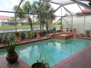 Great location for this 2 bedrooms, 2 1/2 bathrooms, one story single family home. Beautiful lake views. Marble flooring throughout. A/C approximately 4 years old and has service contract attached to it. Washer and dryer are one year old. Den can be easily be converted into a third bedroom. Double French doors lead to large screen enclosed covered patio with view of the lake, pool and Jacuzzi area. Hurricane proof glass doors. Home has hurricane shutters.