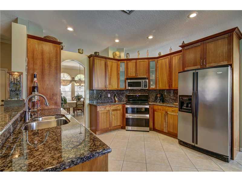 Freshly updated pool home on private water preserve. Wide lake vistas accent the screened pool/spa & covered patio. Tile & wood flooring, formal living/dining, big eat-in kitchen w handcrafted wood cabs,granite & stainless appliances opens to spacious fam ily room. Master Suite w built-in closets, new bath w wood cabs, counters & featuring, enlarged 2 person shower. Newer AC, pool diamond bright,extensive tropical landscaping w rock borders, flowering plants & palms. Gated community, top schools.