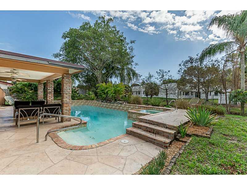 Beautiful 3bd+den,2 bath,2CG pool home w/circular driveway. IMPACT GLASS WINDOWS & DOORS-$18K, newer roof-$33K, newer hurricane rated garage door = very low insurance. Open floor plan w/updated wood kitchen cabinets GE Profile convection oven, front load washer, updated 2nd bath, 20" porcelain tile in kitchen, dining room, den & 2 bedrooms. Gorgeous custom oversized heated pool w/built in whirlpool and waterfall, on waterfront lot. Euro tile patio w/fenced yard. Close to schools, shopping and restaurants