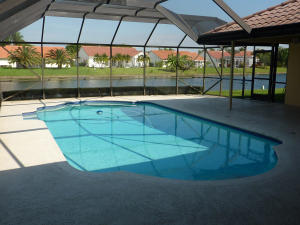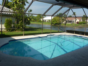 Beautiful 4 bedrooms, 2 bath home sited on lake lot. New kitchen, appliances purchased in 2013. Wood floors throughout. New French Doors out to pool. Newer a/c 2012. Newly painted inside and outside with new baseboards thru-out. New impact rated front door. Electrical work in place if you want to install a pool heater. Nice yard. Original roof in excellent condition. LOW HOA includes recreation center, Fitness Center, Cable & HBO. Easy to show.