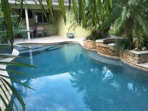 AMAZING 2BR 1BA POOL HOME, 1 CAR GARAGE & CIRCULAR DRIVE, TILED THRUOUT, UPGRADES GALORE, WOOD BURNING FIREPLACE IN LIV RM, UPDATED KITCHEN, GRANITE COUNTERTOPS, HIGH-END STAINLESS APPLIANCES, UPDATED BATH, LARGE SHOWER, WASHER/DRYER HOOKUP, FRENCH DOORS TO COVERED PATIO OVERLOOKING POOL & TROPICAL BACKYARD! EXTRAS INCLUDE KITCHENAIDE APPLIANCES, MICROWAVE/CONVECTION OVEN, LOTS OF CLOSET SPACE, HURRICANE IMPACT WINDOWS (EXCEPT FOR KIT SLIDE WINDOW TO COVERED PATIO WHICH HAS HURRICANE PANELS), 2 SHEDS, COVERED PATIO INCLUDES PADDLE FANS & TV, TROPICAL BACKYARD IS WALLED FOR PRIVACY, LIGHTED THRUOUT & WIRED FOR OUTDOOR SPEAKERS, SALT WATER POOL, CUSTOM SHAPE, 3.5'' ON EACH END & 5' CENTER, SUNDECK, 4 DECK SQUIRTERS, SQUIRTING TIKI, NEW ROOF 2015.