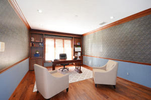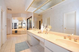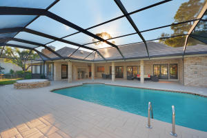 Fabulous private lake front estate home in gated country club community of Breakers West in central WPB. 3BR+Office or 4BR, 3 Full, 2 Half Baths. Traditional details that never go out of style--French doors, new stone floors, crown molding, fireplace. New kitchen w/center island, double Wolf wall oven, Sub-Z refrig, 6 burner cooktop & hood, 2 dishwasher drawers, wine refrig opens to spacious family room w/vaulted wood ceiling and fireplace. Two lg guest rooms with great closets and bathrooms. Covered patio with screened 16x32 pool, outdoor BBQ overlook one of the best water and golf views in neighborhood! Newer tile roof (2003). Hurricane approved cloth panels provide protection for home. Club memberships available at either Breakers West or Mayacoo Lakes but not mandatory.