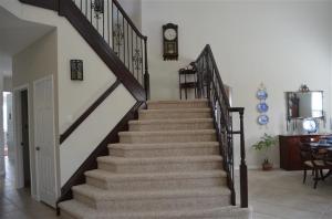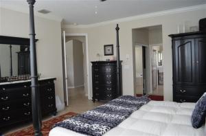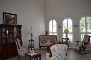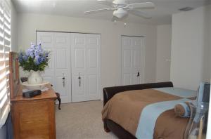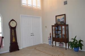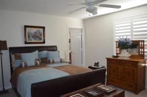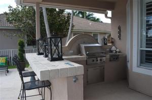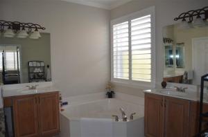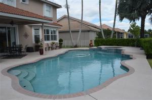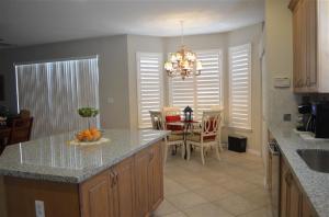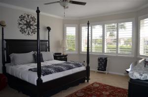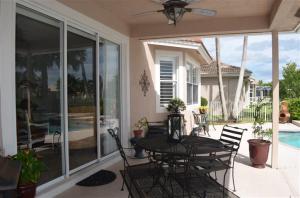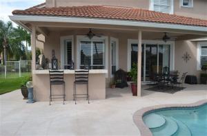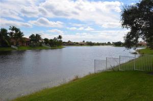 Outstanding waterfront property with expansive views. ACCORDION HURRICANE SHUTTERS 2 story w/master bedroom on main level. Neutral 18'' diagonal tile flooring. Plantation shutters throughout. Granite kitchen w/stone backsplash plus granite island w/seating, SS appl. extended maple kit. cabinets & dramatic dual stairway w/decor wrought iron railing.Oversized family room on 2nd level. Outdoor summer kitchen with snack bar seating under covered patio. Oversized heated salt system pool with elevated spa. High ceilings with decor neutral paint throughout. Large patio seating areas. Fenced property. 2 air conditioning units (2003 & 2011)Beautiful landscaping, mint condition home.