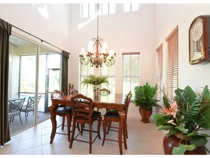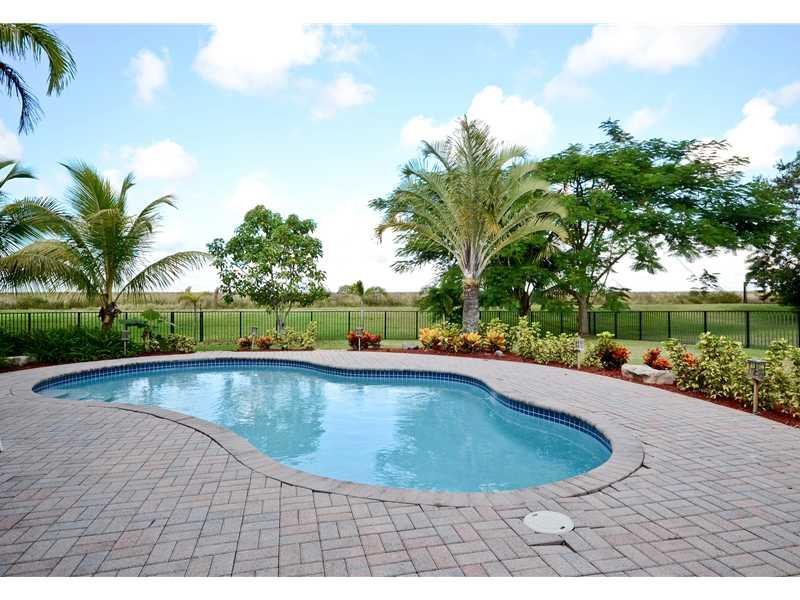 Gorgeous pool home on huge fenced lot in Heron Bay! Gourmet kitchen w/ 42" maple cabinets & granite tops. End of cul de sac w/ total privacy and tropical landscape and lake views. Accordion Shutters, wood floor, crown moulding, wood blinds & more! Enjoy everglades view from Master balcony. Must see the location, lot & views to believe! Oversize driveway, fruit trees, courtyard entry & nicest yard in Casa Del Sol make this one special!