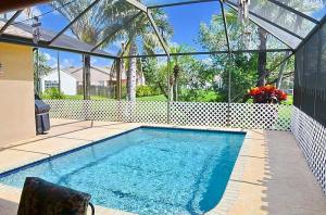 Nicely updated one story home in Boca Winds. This three bedroom two bath home with pool is just waiting for the perfect buyer. Tile floors set on the diagonal and carpet in the bedrooms. Kitchen has wood cabinets with granite counters and stainless steel appliances. Newer roof and gutters in 2010 and a/c replaced in 2007/2008. Screened patio and pool area with additional green space in back. This home is extremely neat and clean!!!