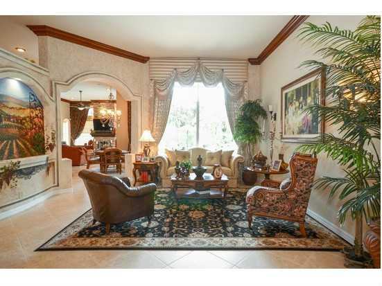 Parkland Perfection! Professionally decorated/landscaped 5 bed 3bath 3 car. garage. Triple split floor plan , home on a spacious and private waterfront lot. 42" Pecan kitchen cabinets, granite counters with travertine backsplash. Real fireplace with cust om stone mantel & cabinetry. newly renovated resort-style pool,with rock waterfall, glass tiles & cooling - misters system. Patio has 24" travertine marble laid diagonally. French doors in family & master bedroom, crown moldings throughout. and much more!
