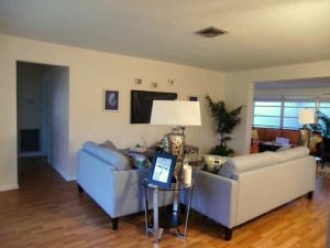 Large, bright 3/2 +2 car garage. Split bedrooms. Brand new A/C, hot water heater, tile roof, indoor/outdoor paint. Kitchen has wood cabinets, granite counters, stainless steel appliances, kitchen b-fast bar opens to large family rm. Wood and tile floors throughout. Bathrooms updated, new wood vanities & seamless door shower. Two patios with privacy fencing. AS-IS