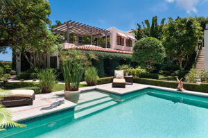 Beautiful Spanish Mission style home on Flagler in El Cid with direct Intracoastal views. Completely renovated in 2009 including impact windows and doors, Icynene insulation, new electrical, plumbing, tankless water heaters, new roof and much more. Gourmet kitchen with water views, large master bath and full dressing suite. Two sets of W/D's. New pool added during renovation. Main house has two bedrooms and a den and separate guest apartment over garage. Completely secure and gated property with abundant lush landscaping offering total privacy. Meticulously maintained. A must see.