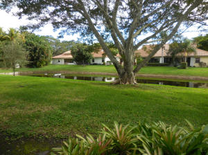 Back patio of this gorgeous home is a quiet oasis. Overlooking the wide canal with huge Banyan trees providing shade.Nice open living areas with quality laminate flooring throughout. Third bedroom has been opened up but doors can be installed to keep it private. Bathrooms and kitchen are spotless. Very well cared for home. Great people in neigborhood. Clubhouse with gym, pool, card rooms and many other amenities.Owner is leaving both flat screen TV's and patio set!Association paints the homes every 5 years.Roof Replaced 2003.