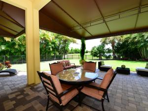 This is a fabulous home located in Ironhorse Golf and Country Club overlooking the 18th hole of Arthur Hills designed Golf Course. This home sits on a .37 acre lot with beautiful new landscaping and great privacy. You will be able to enjoy the large patio which is covered with a Hurricane grade awning and also an Automated Mosquito Nix system with timer & remote control to enjoy bug free evenings. Beautiful completely renovated eat-in kitchen completed in May 2014. All new stainless steel KitchenAid professional series appliances with 3 year warranties, marble and onyx tile backsplash and granite and marble countertops. Hardwood floors in the den and bedrooms,tile throughout,security system, upgraded master bathroom and central vacuum system. Membership is not mandatory but very affordable