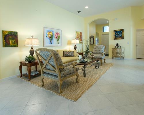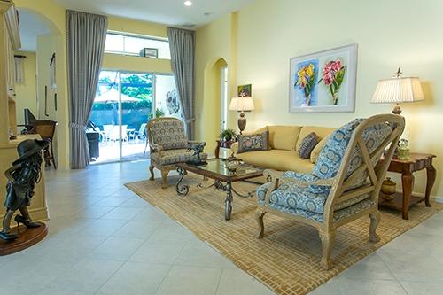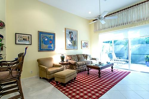 Wonderfully decorated 2BR/2.5BA+Den ''Hamilton'' with fabulous upgrades. This meticulously maintained home offers a large screened patio, accordian hurricane shutters, upgraded stainless appliances, upgraded wood cabinetry. Neutral tile, set on the diagonal, designer colors, light treatments and window treatments make this home move-in perfect. Ideal southern exposure in rear, steps to Grande community pool. Plantation shutters and other designer touches. New appliances: AC, Washer/dryer, water heater, dishwasher, disposal.